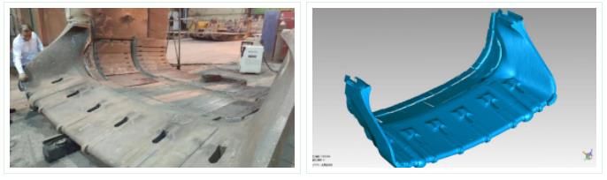 客戶使用傳統卡尺測量建模的方法對挖斗進行逆向建模,經常會遇到諸如測量速度慢、曲面測量不準確、無法對復雜曲面進行 測量等問題,建模很大程度取決于工程師的感覺,不可能做到1:1還原。客戶希望通過三維測量,解決建模精準度和建模規范化的 問題。